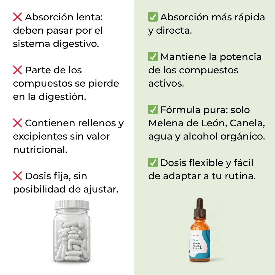 El extracto líquido tiene una absorción más rápida y eficaz, lo que permite que los compuestos activos lleguen antes al cerebro y se aprovechen mejor.